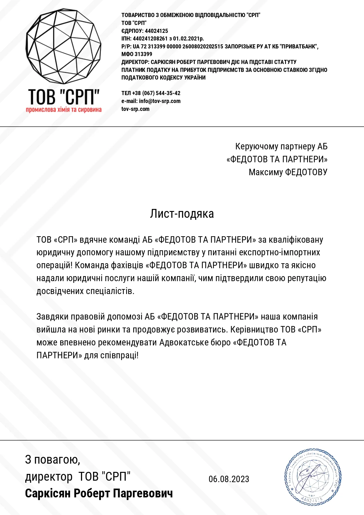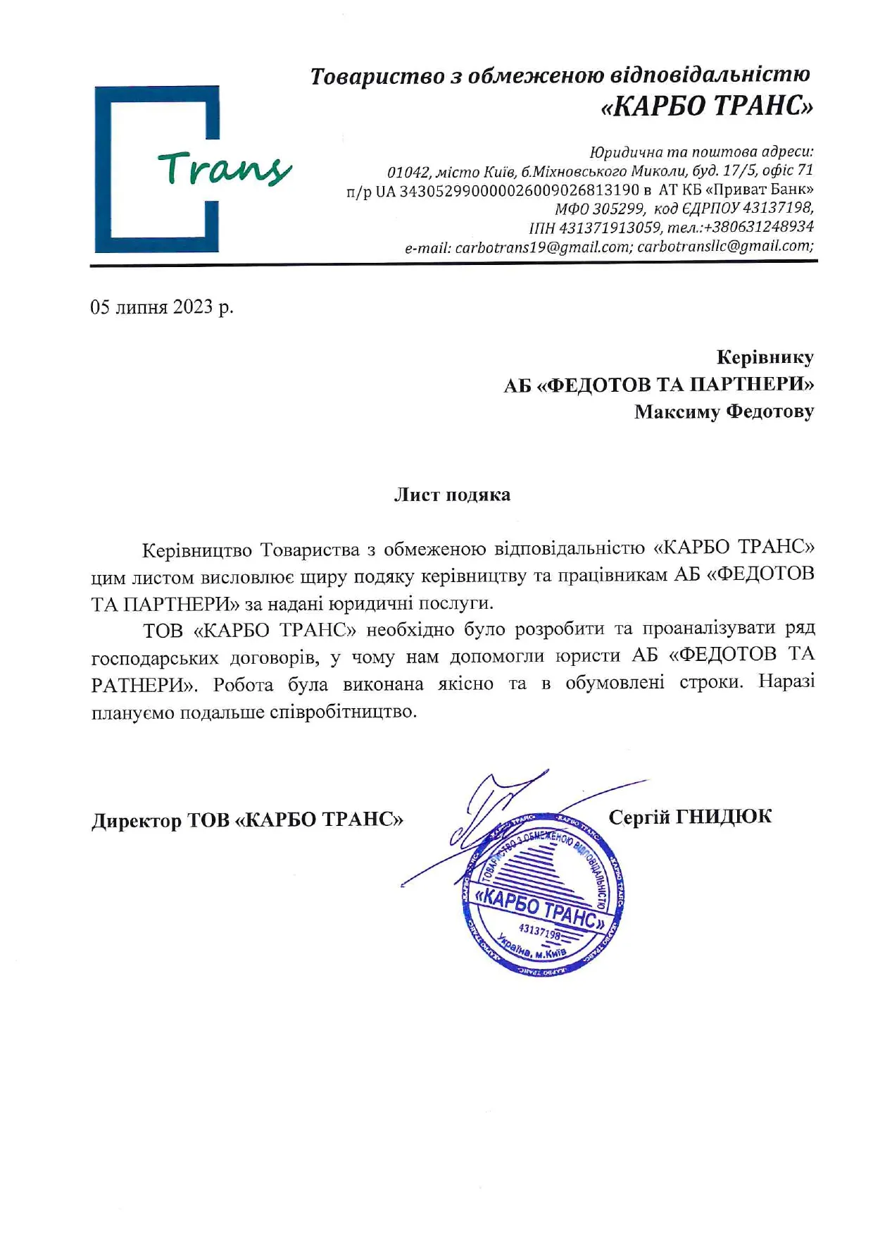 - Представництво інтересів перед контрагентами та юридичний супровід угод;